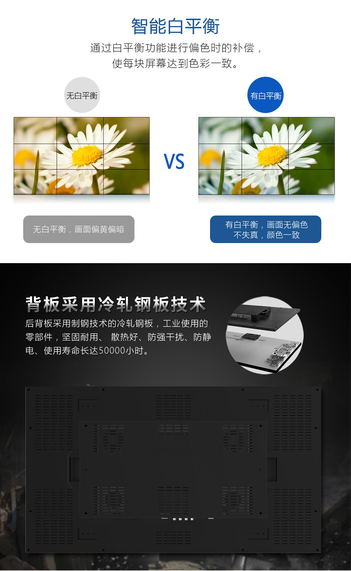 ◆ 色彩均勻,圖像穩(wěn)定,專(zhuān)為拼接大畫(huà)面定制功能;