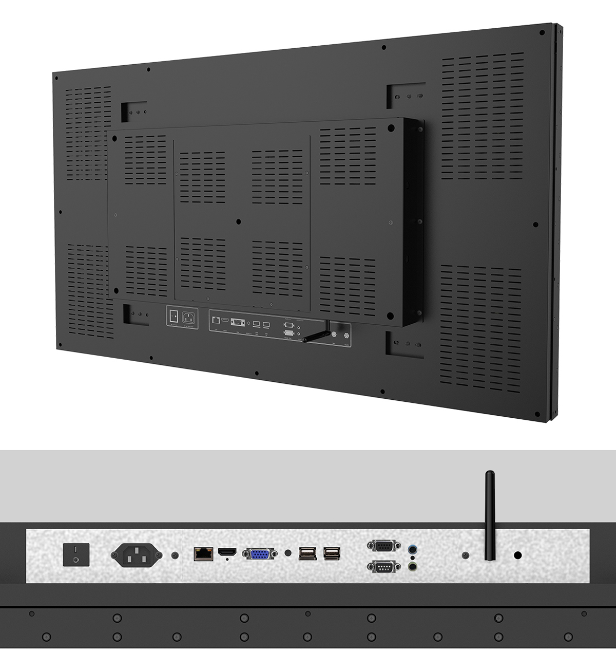 ◆ 液晶拼接大屏緊湊美觀,獨(dú)特的安裝方式有很好的散熱性;